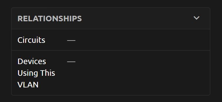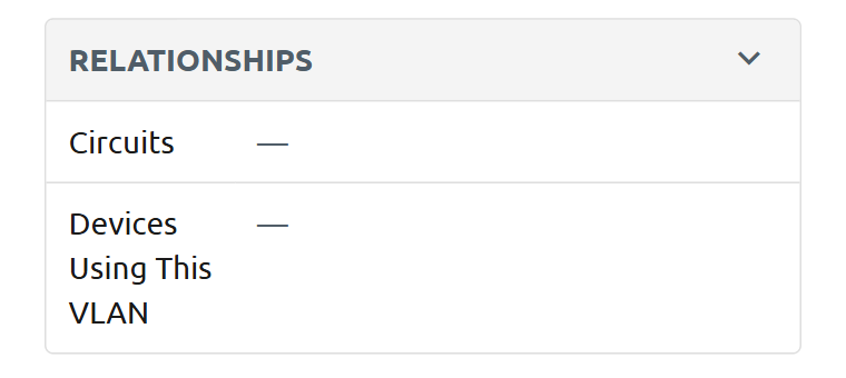 Relationship connections can be labeled with a friendly name so that when they are displayed in the GUI, they will have a more descriptive or friendly name. From the Devices/VLAN example above, you might label the relationship so that on the Device side the connection appears as 'VLANs configured on this device' and on the VLAN side the connection appears as 'Devices using this VLAN'.