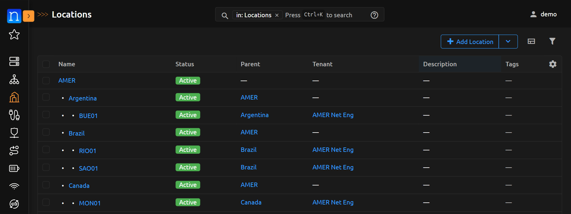 Additional information on Location Types is in the Location Type section of the Nautobot documentation. Additional information on Locations is in the Location section of the Nautobot documentation.