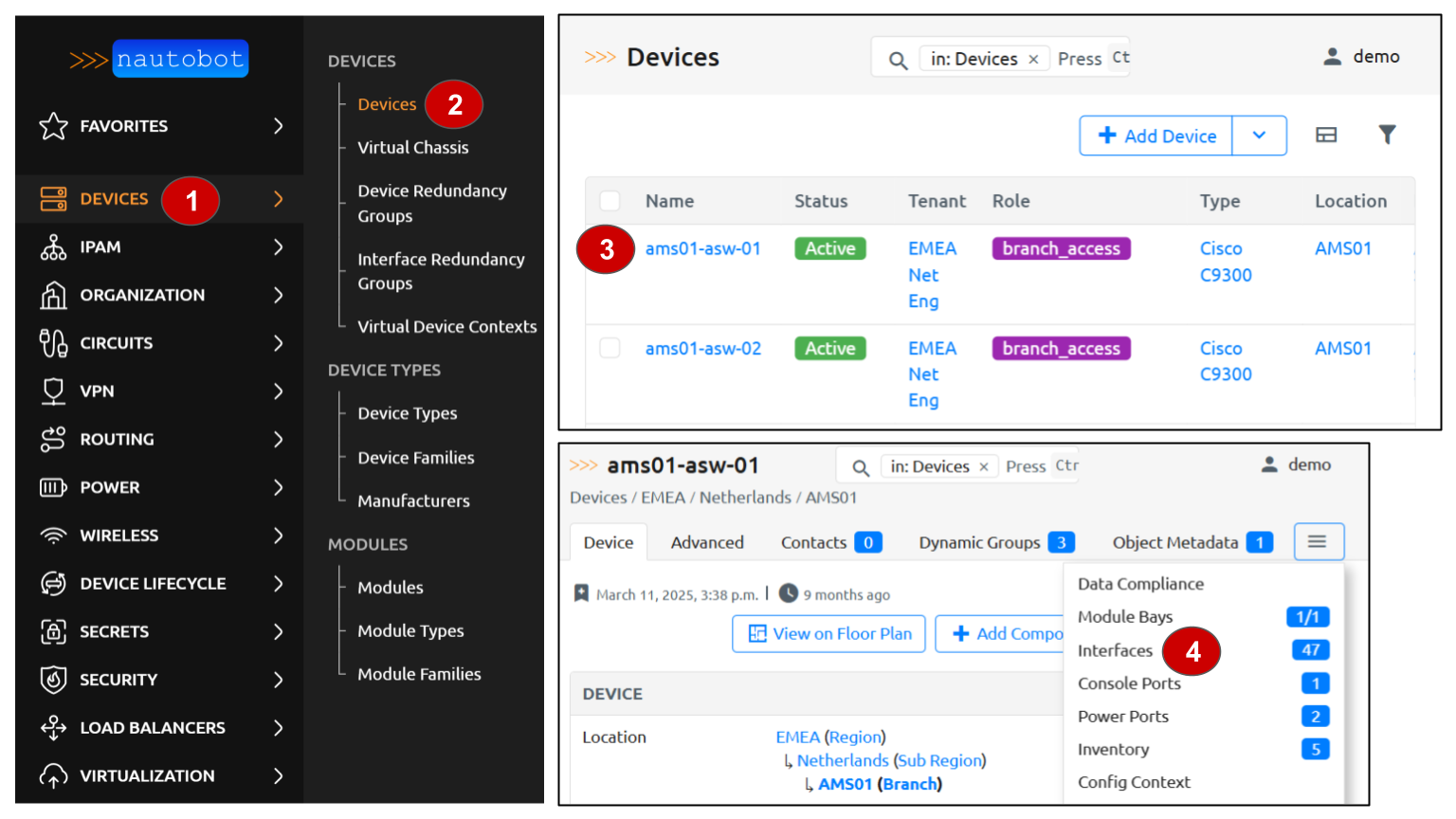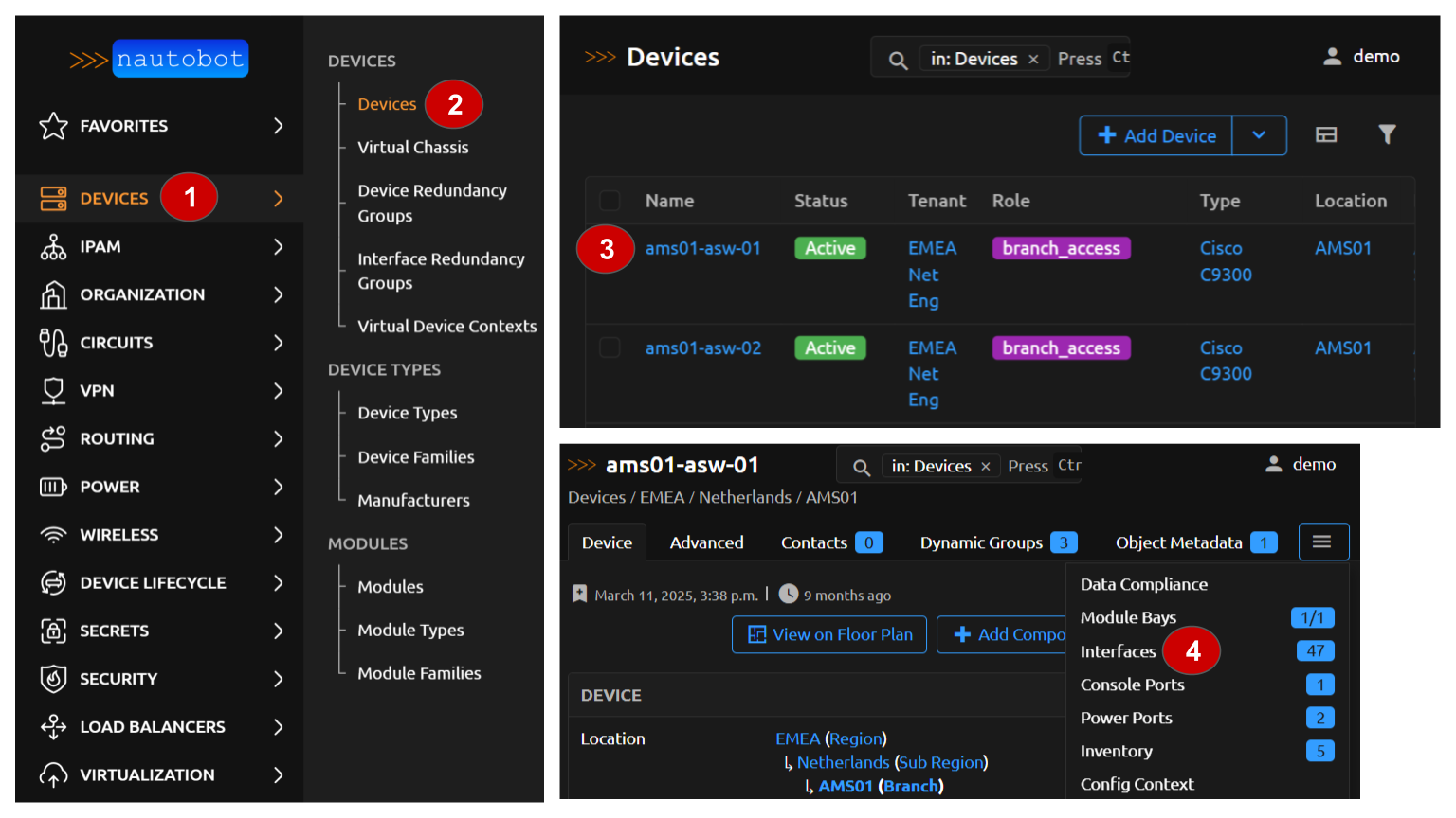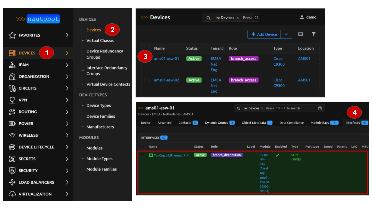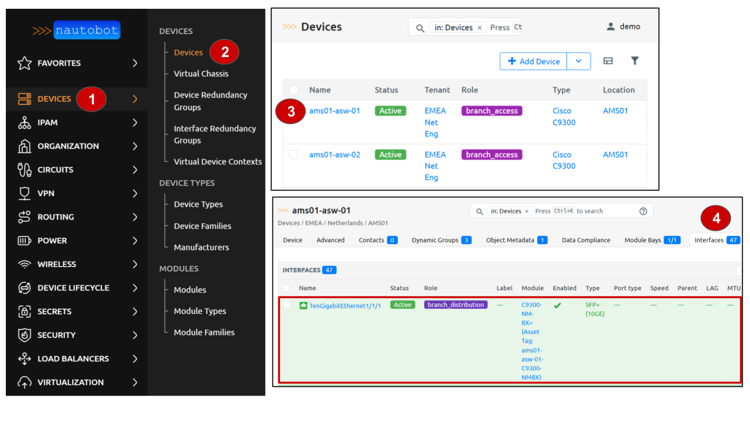 ams01-asw-01in this example) and click on the link to go to the main page for the Device - Go to the