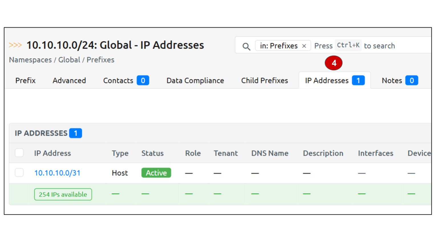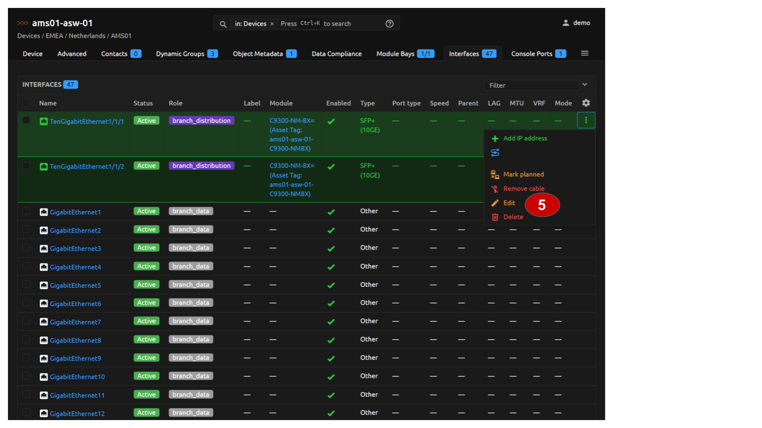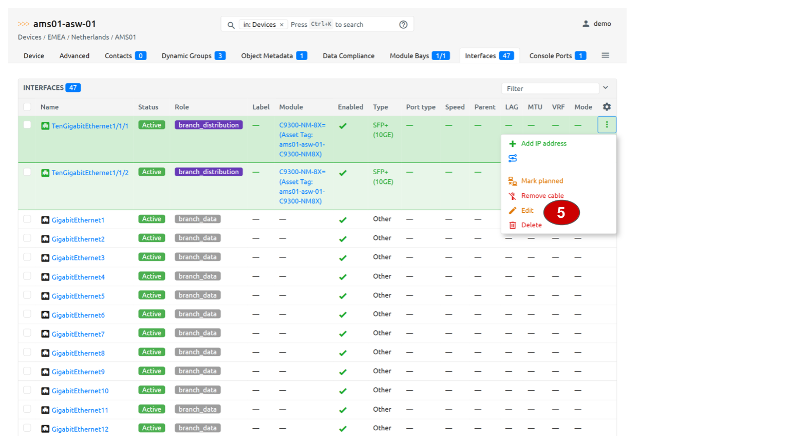 - This will take you back to the Interfaces page for the Device, where you will see the assignment shown under the
