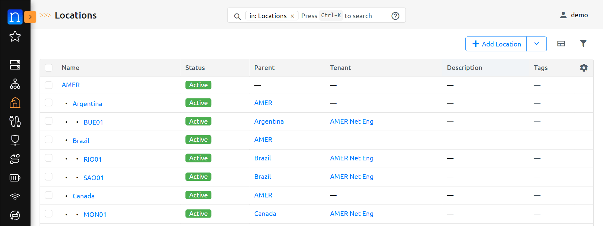 Additional information on Location Types is in the Location Type section of the Nautobot documentation. Additional information on Locations is in the Location section of the Nautobot documentation.