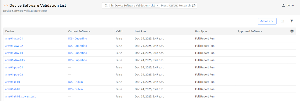 | Last Run | Last time the software validation job was ran on the device/inventory item. |
