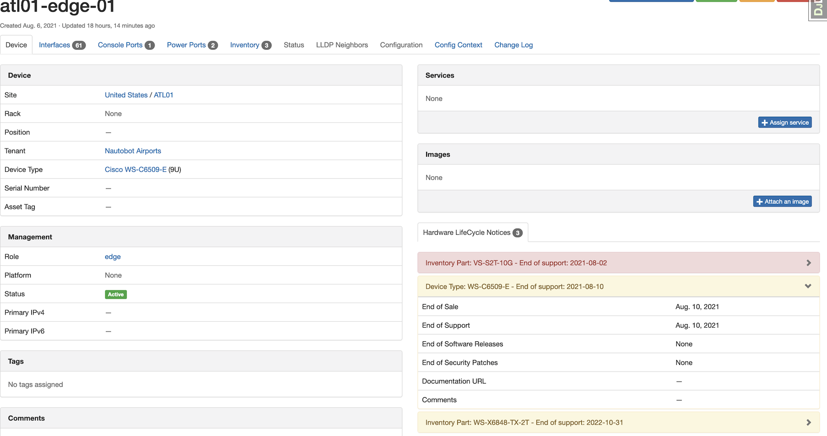 You can also view the associated Hardware notice from the device. If the device is end of life or end of support the notice will be red.