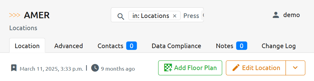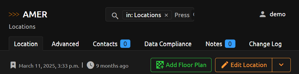 Once a Object (Device, Power Panel, Power Feed, or Rack) has been placed on a Floor Plan Tile you cannot update the Location of the Object until it has been removed from the Floor Plan or the Floor Plan has been deleted.
