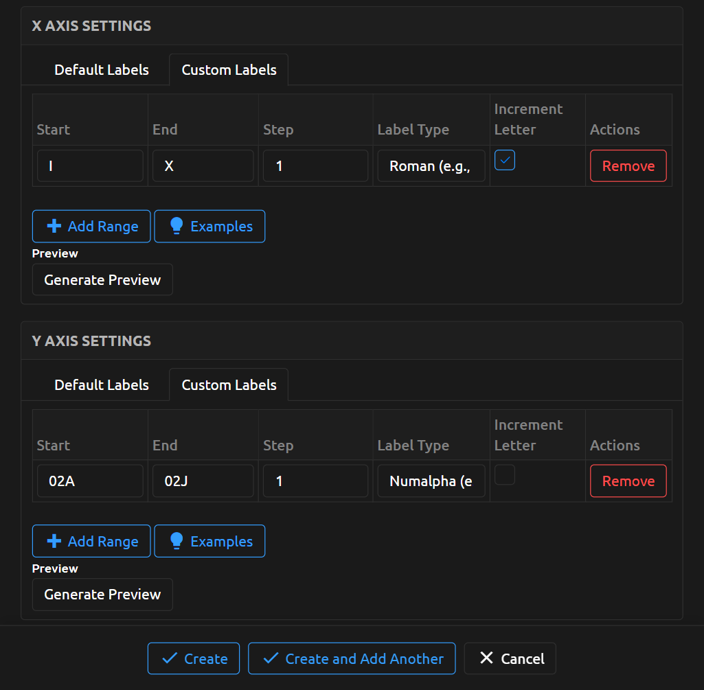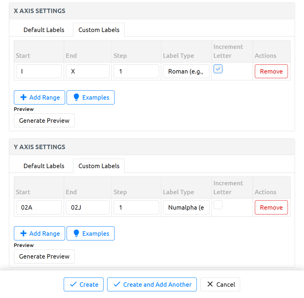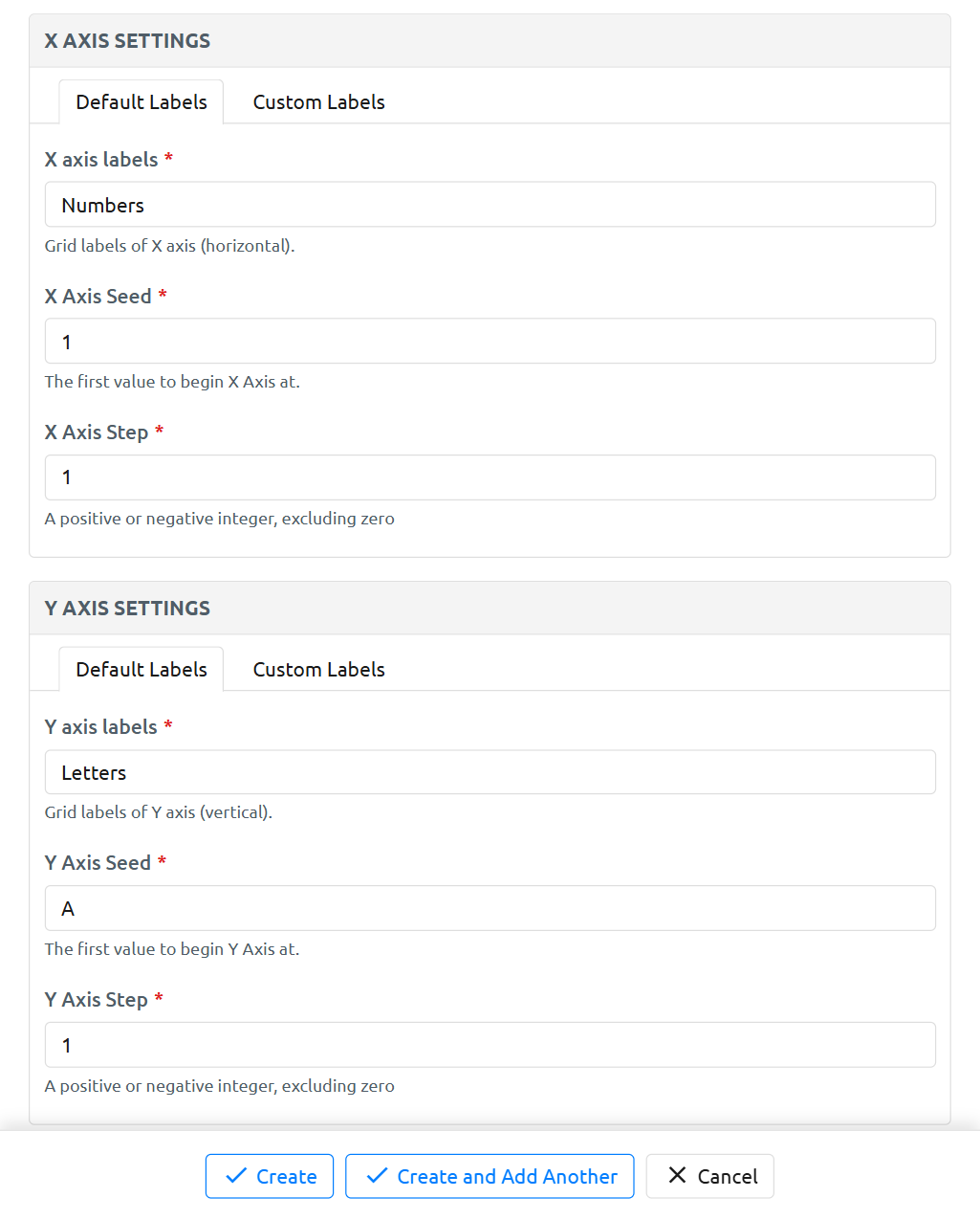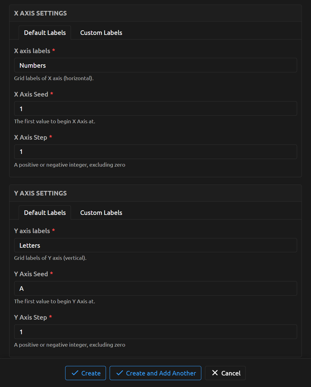 X Axis Seed and Y Axis Seed: Define the starting point for grid labels.