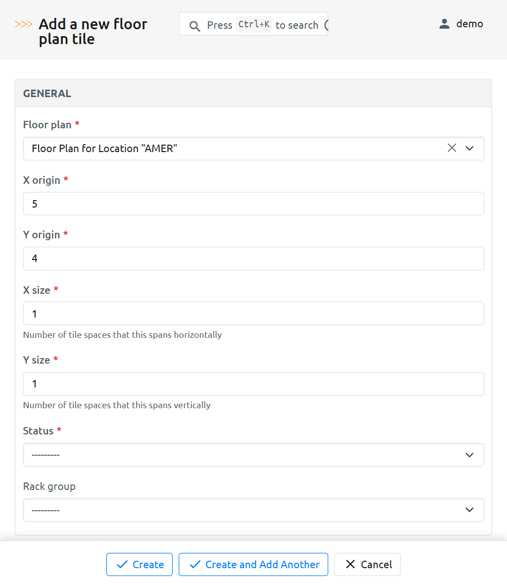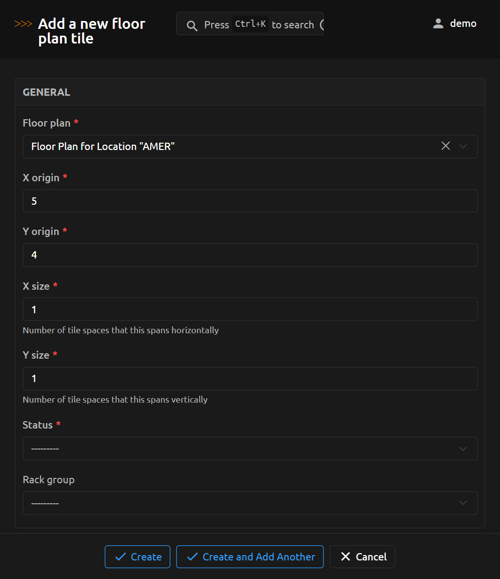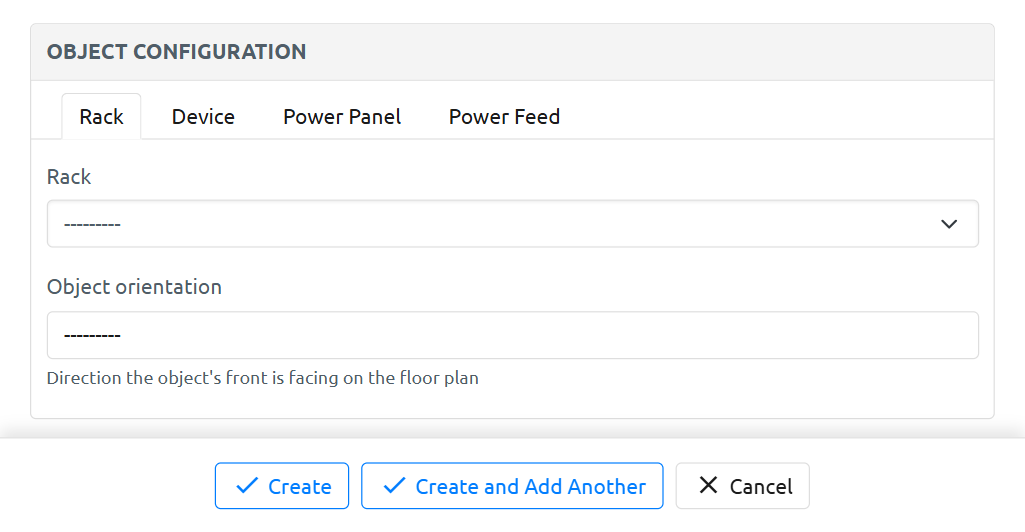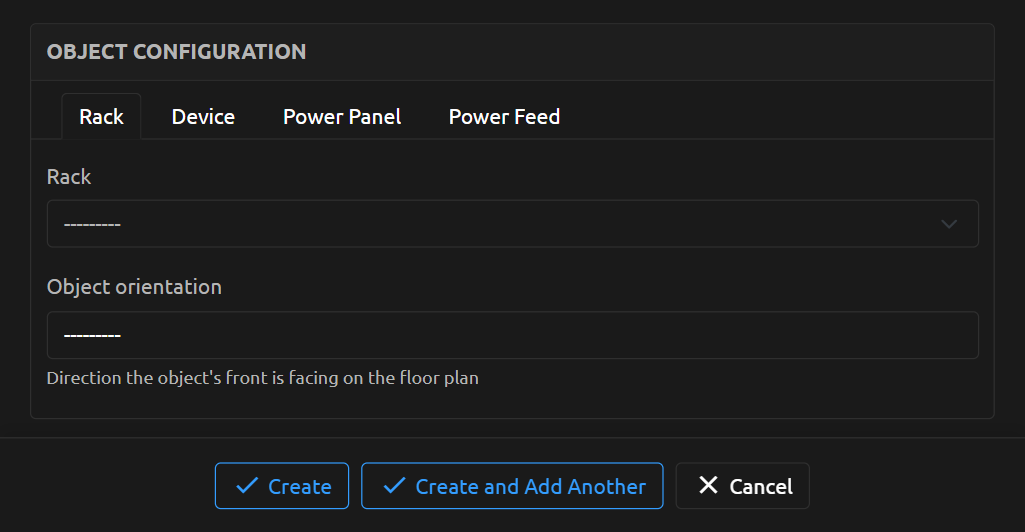 Device, Power Panels, Power Feeds and Racks can be assigned directly to tiles using the Floor plan tile form.