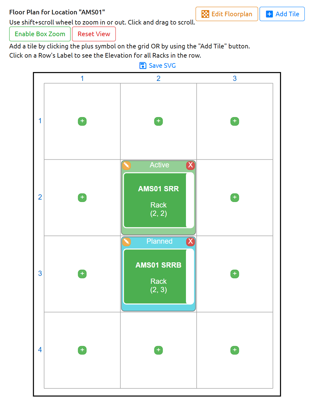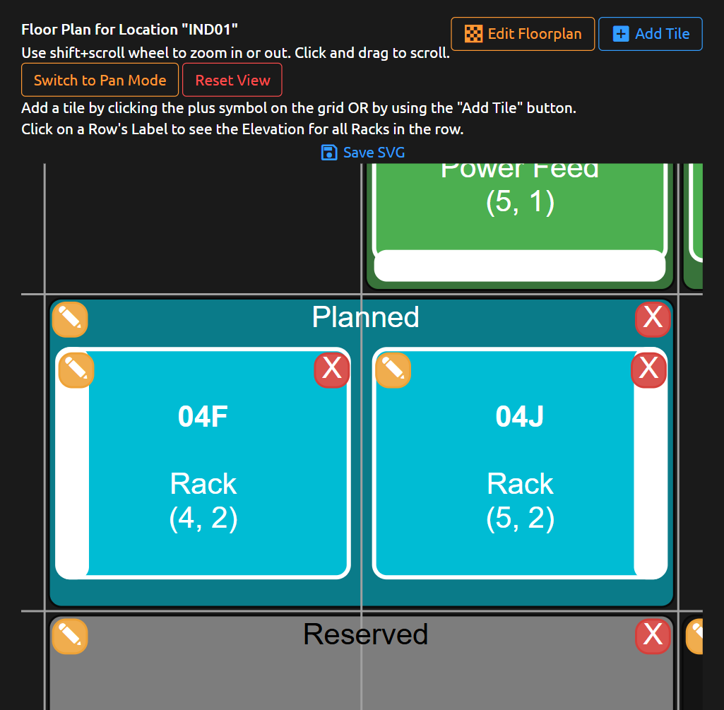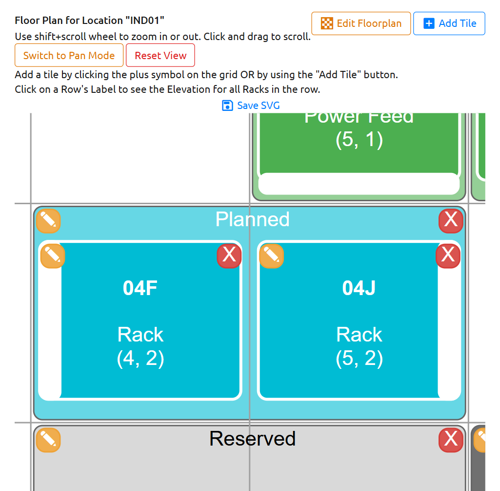 - Useful for documenting larger-than-usual racks or marking sections of the floor plan as "Reserved" or "Unavailable."