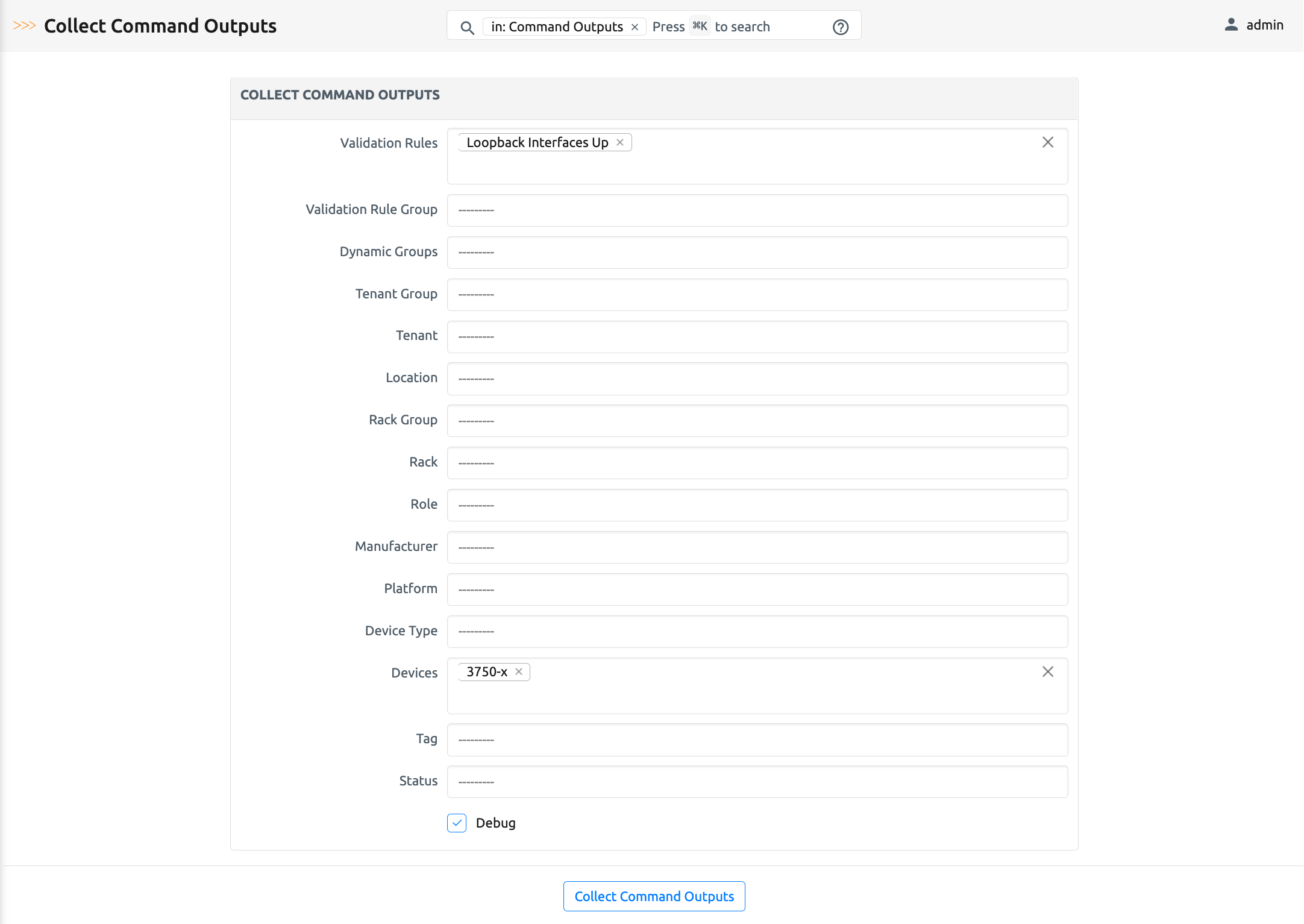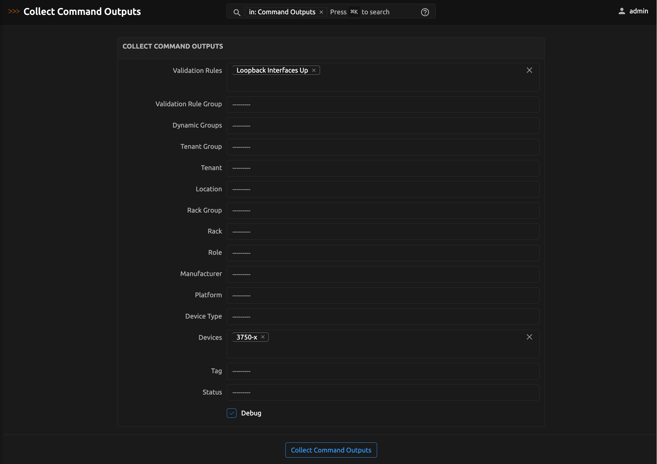 Operations→Operational Compliance→Command Outputs. Click the+button. -