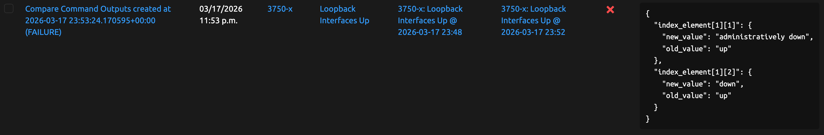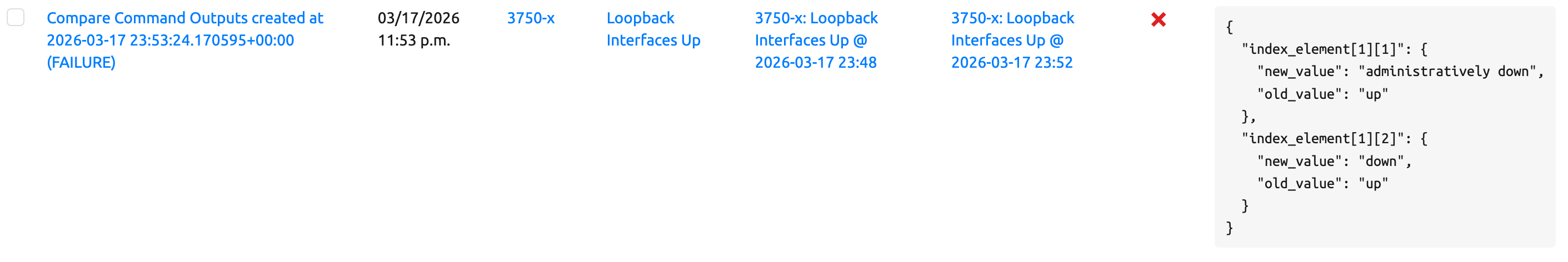 Scenario: Validate that all Loopback interfaces are up before a change, then intentionally shut down a loopback interface, and use the app to detect and highlight the change.