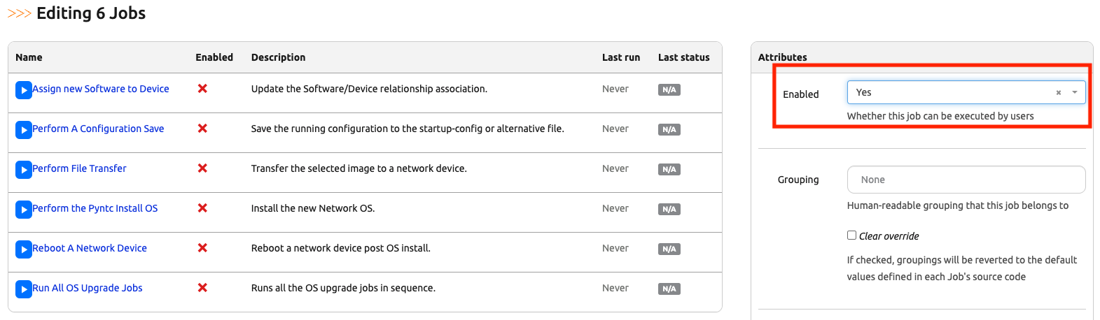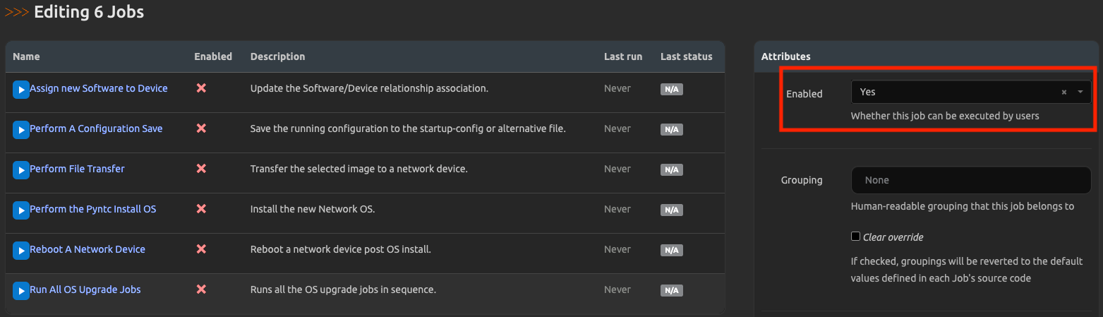 Notice all jobs are disabled by default.