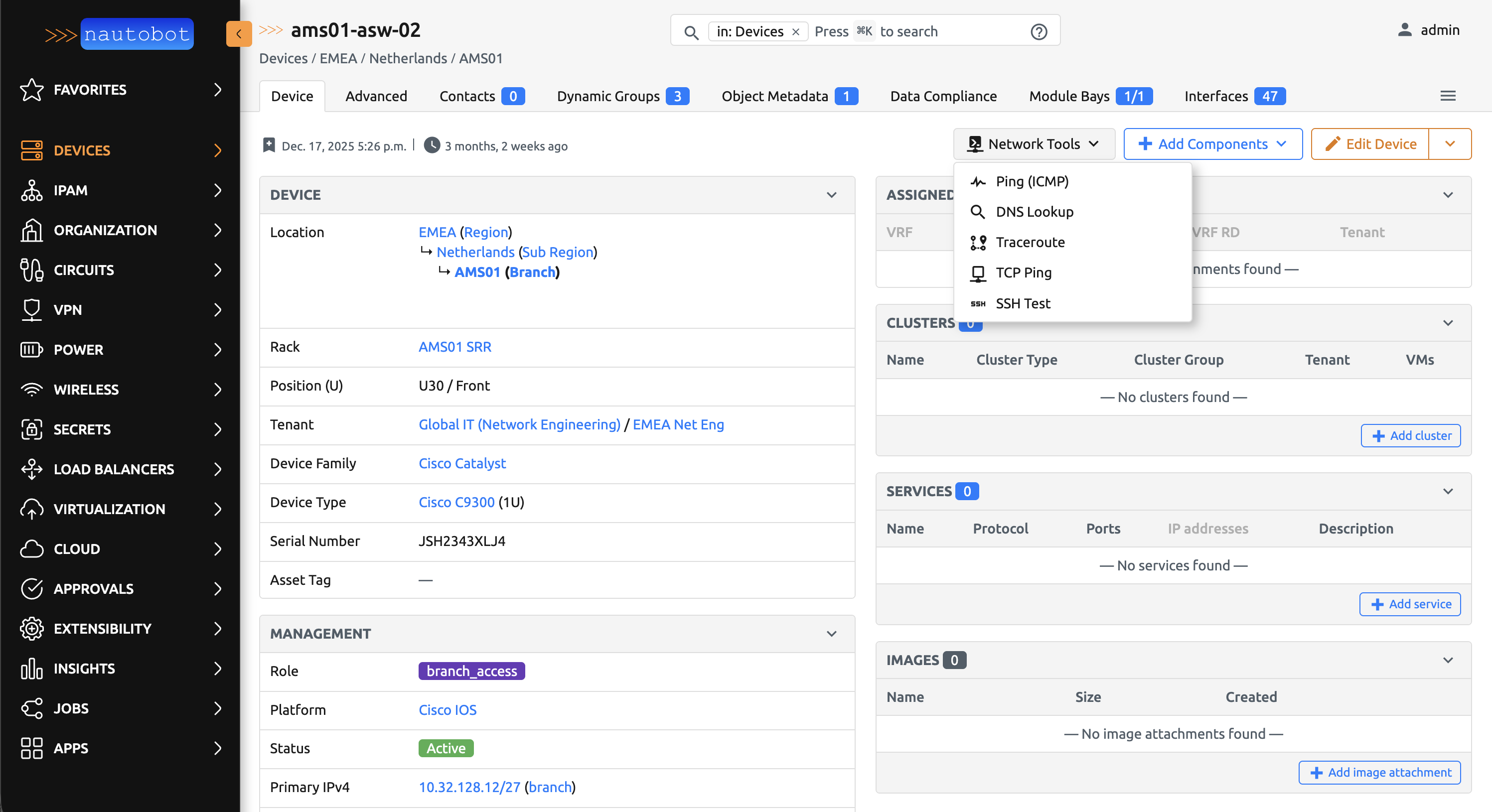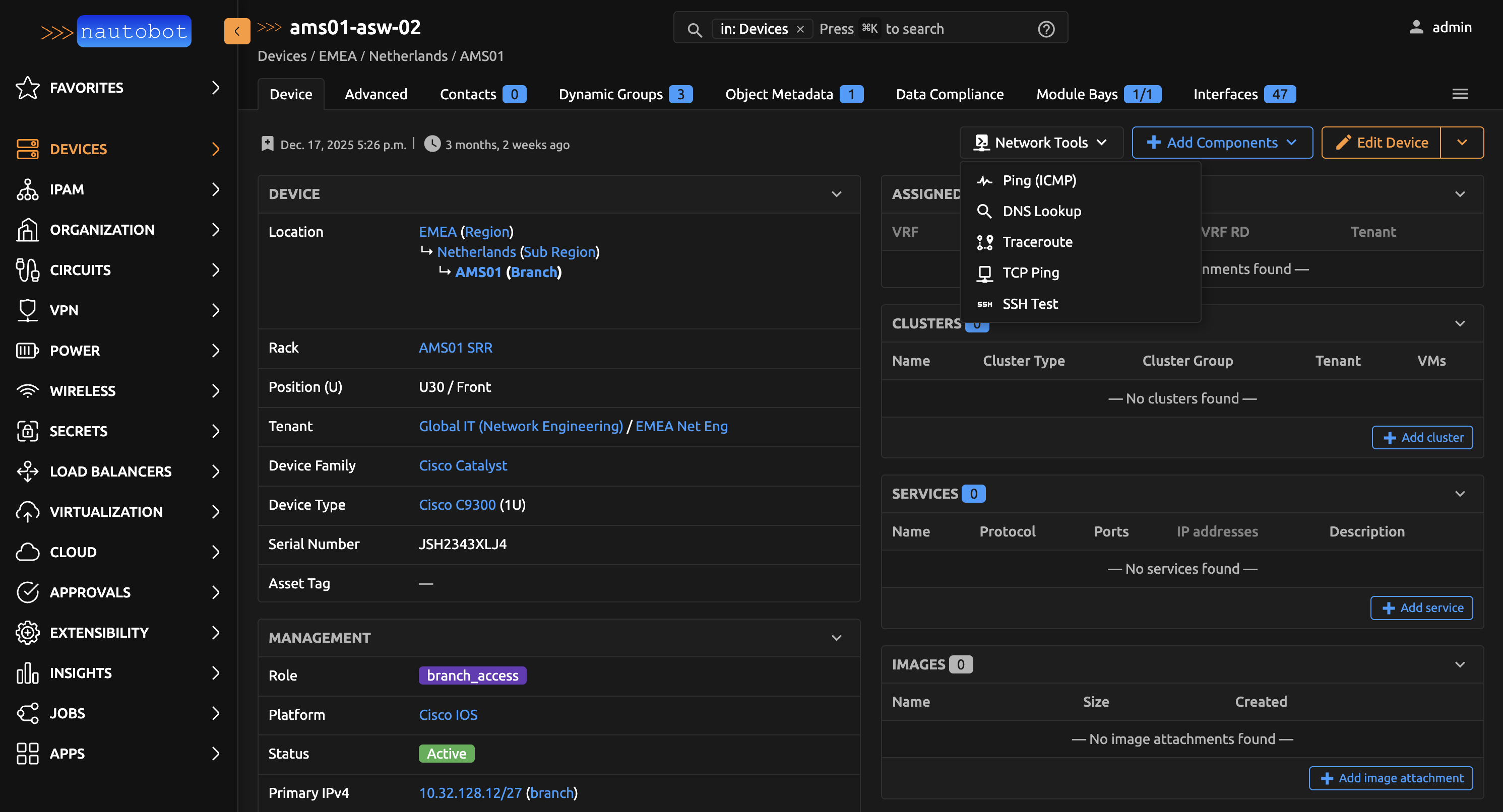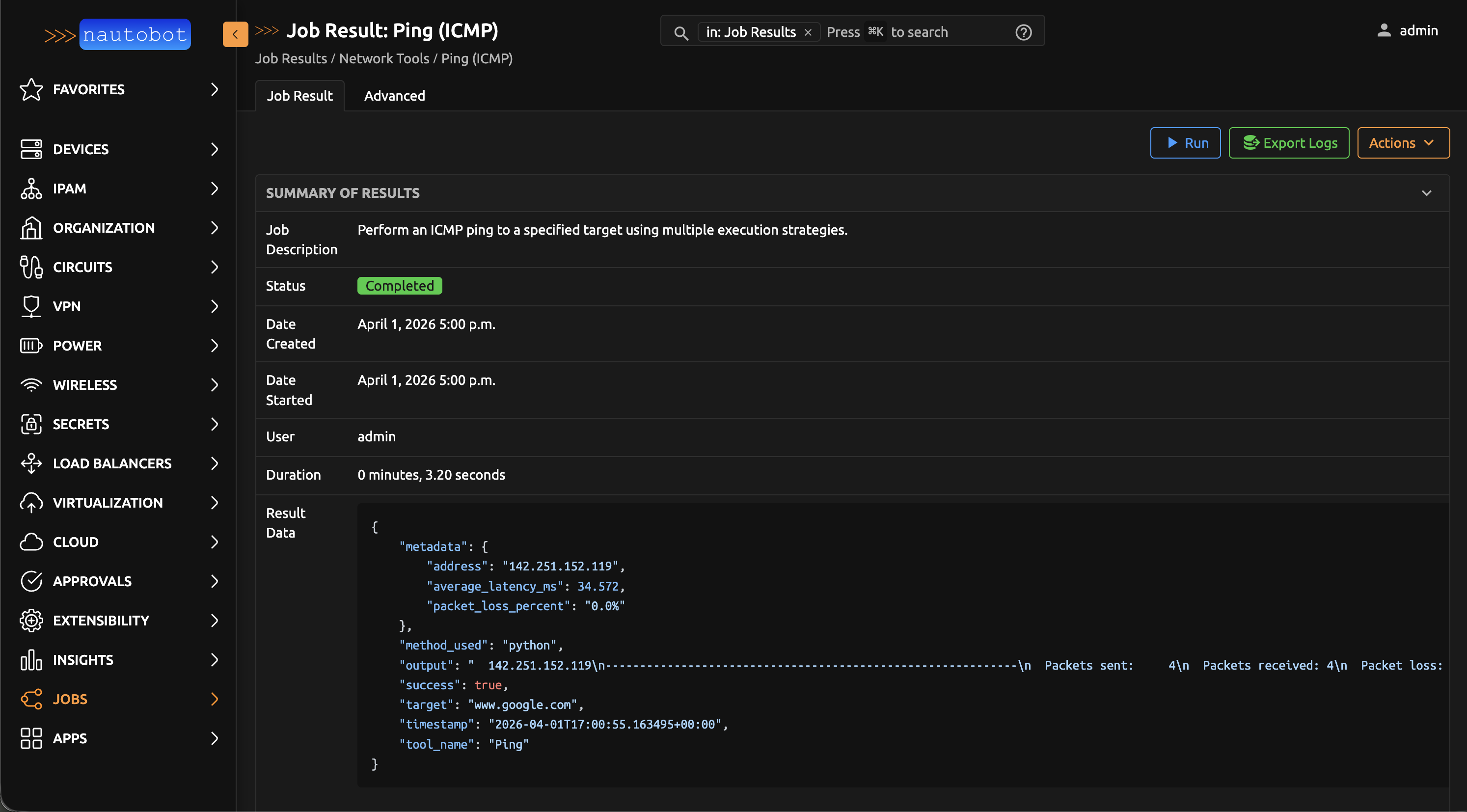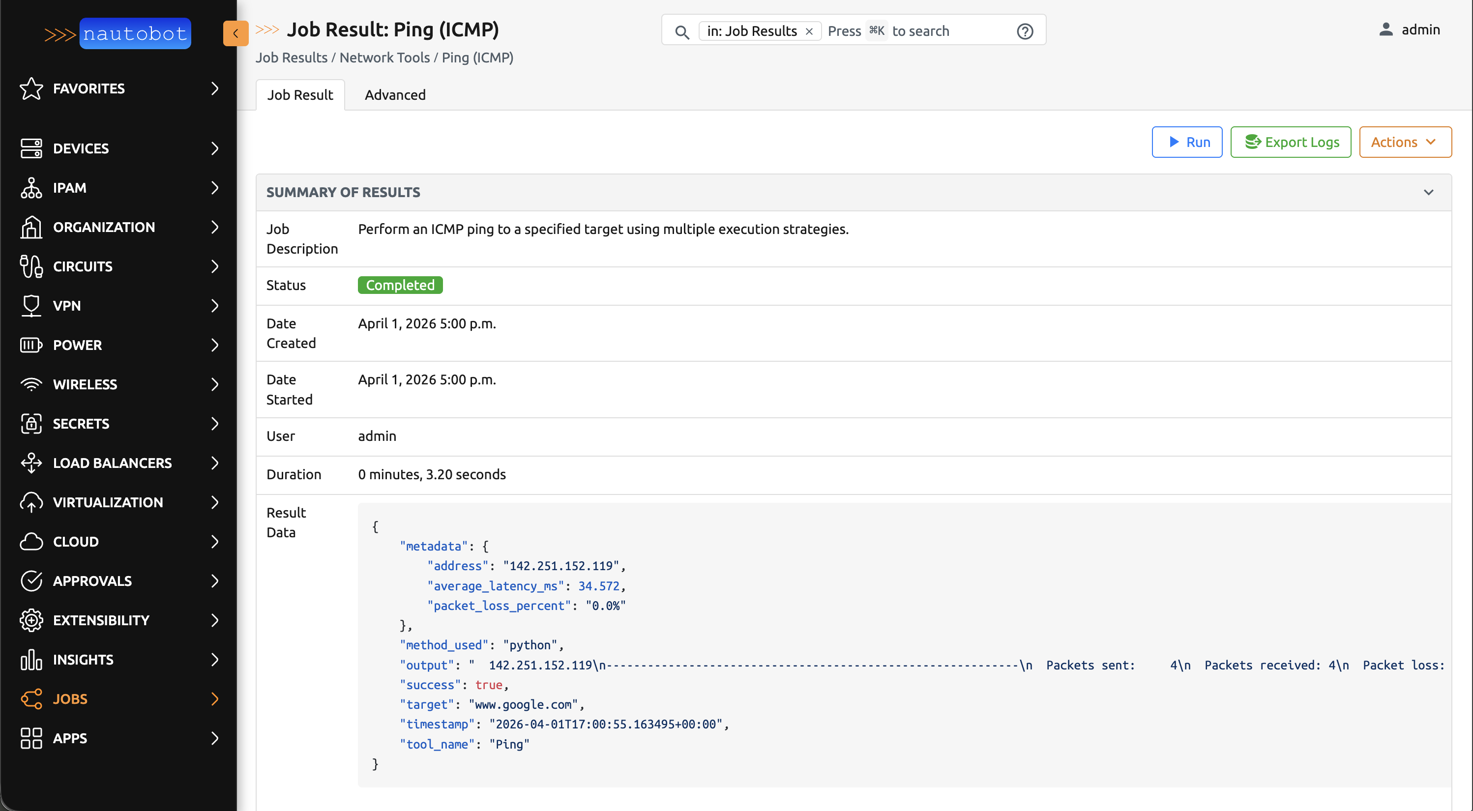 Nautobot Tools includes a suite of network diagnostic tools that help you test connectivity, resolve DNS names, trace network paths, and more — all without leaving Nautobot.